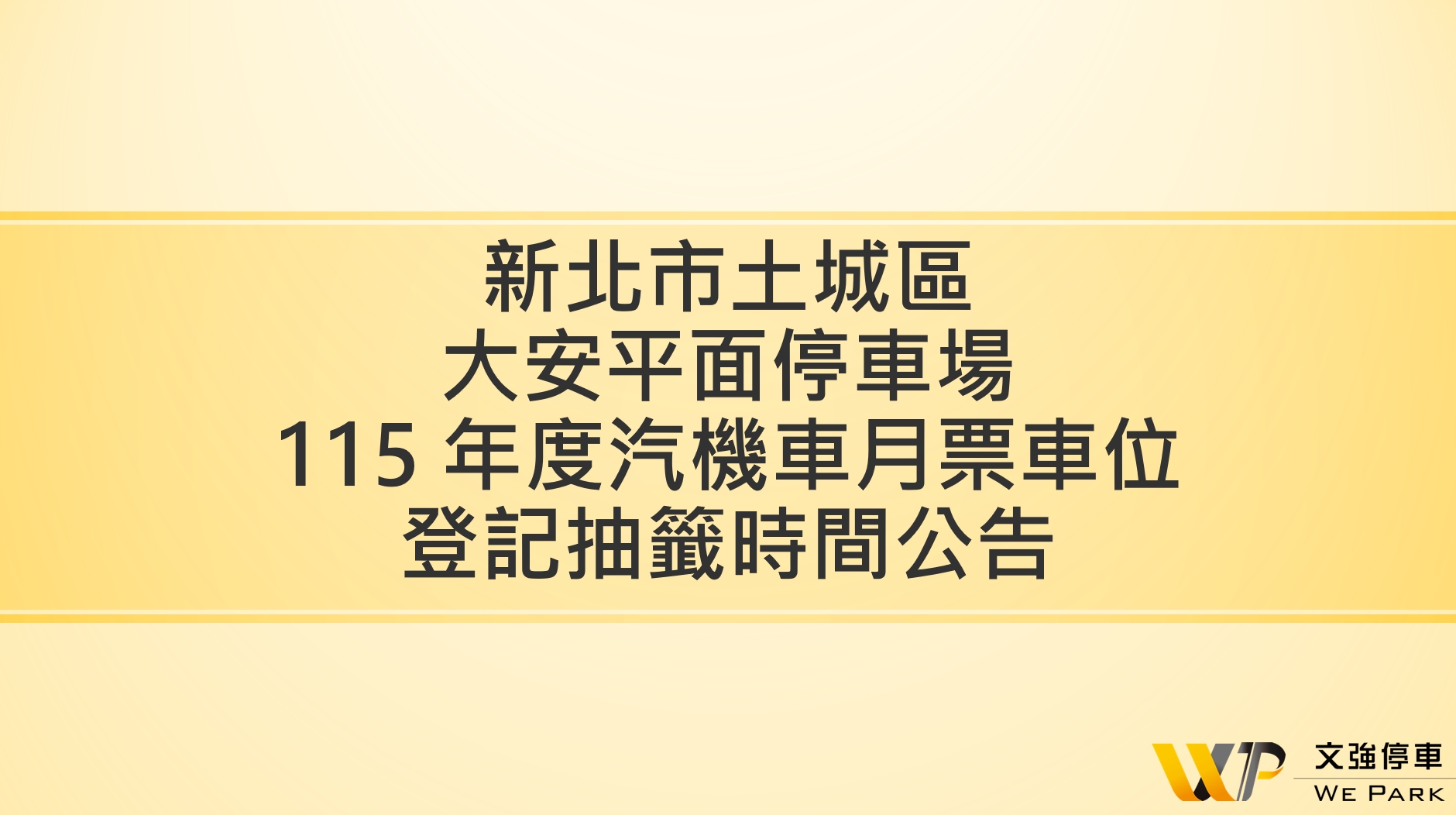 新北市土城區大安平面停車場 115年度汽機車月票車位登記抽籤時間公告