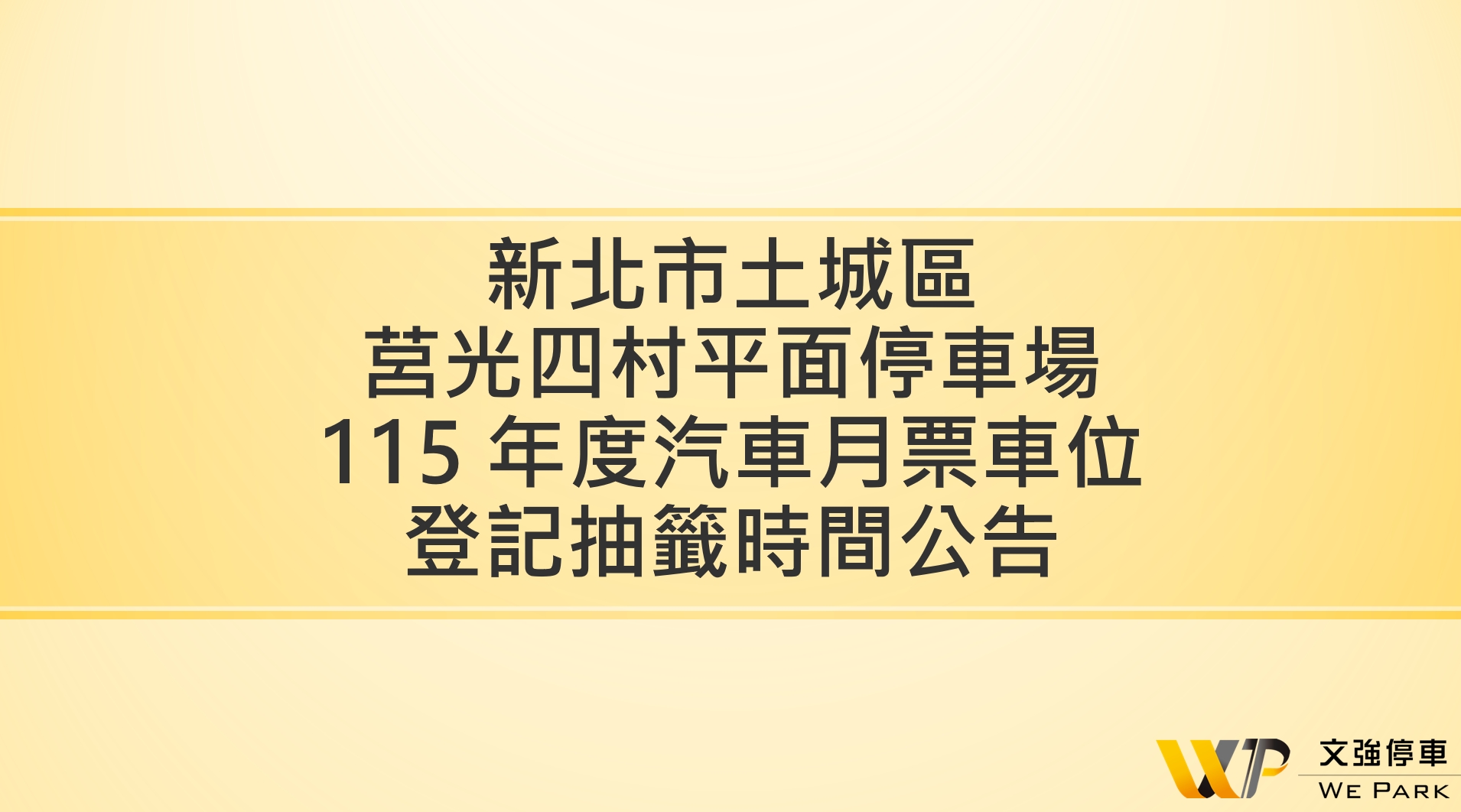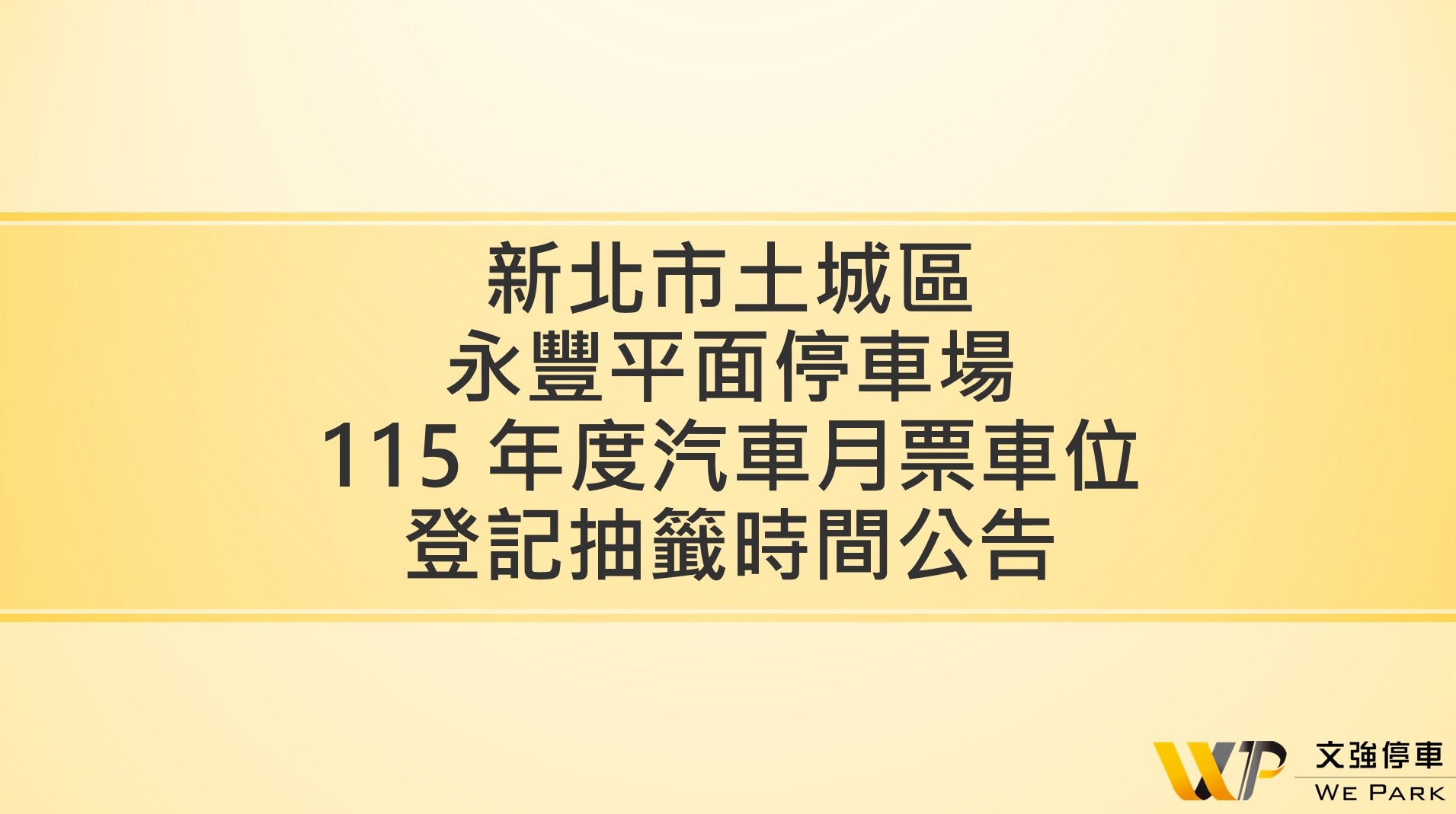 新北市土城區永豐平面停車場 115年度汽車月票車位登記抽籤時間公告