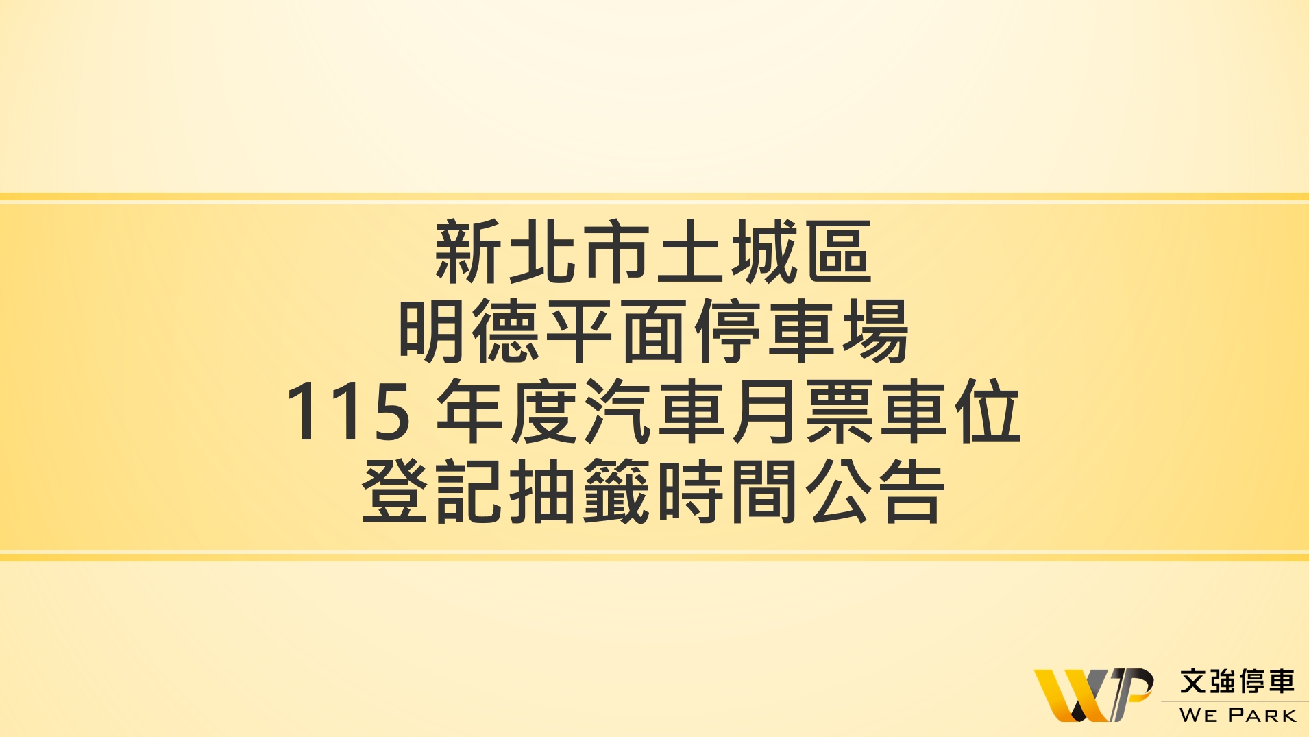 新北市土城區明德平面停車場 115年度汽車月票車位登記抽籤時間公告