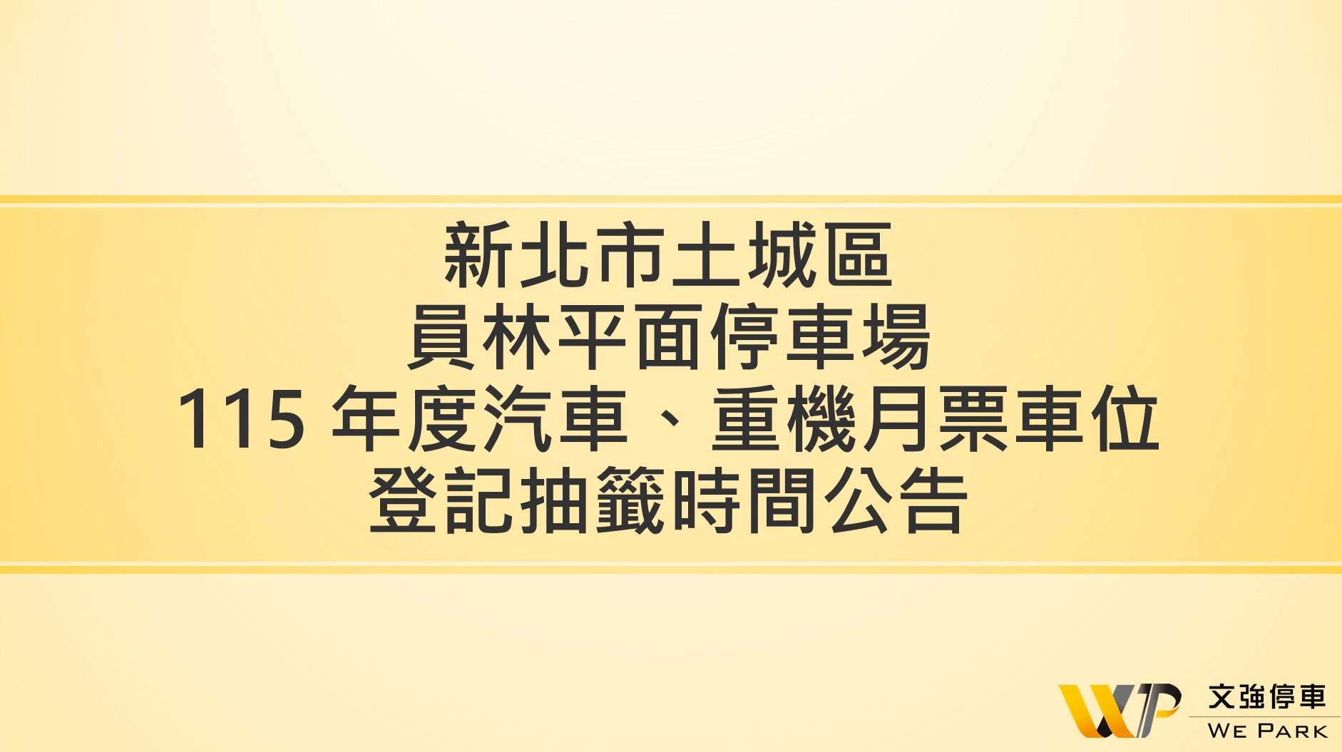 新北市土城區員林平面停車場 115年度汽車、重機月票車位登記抽籤時間公告