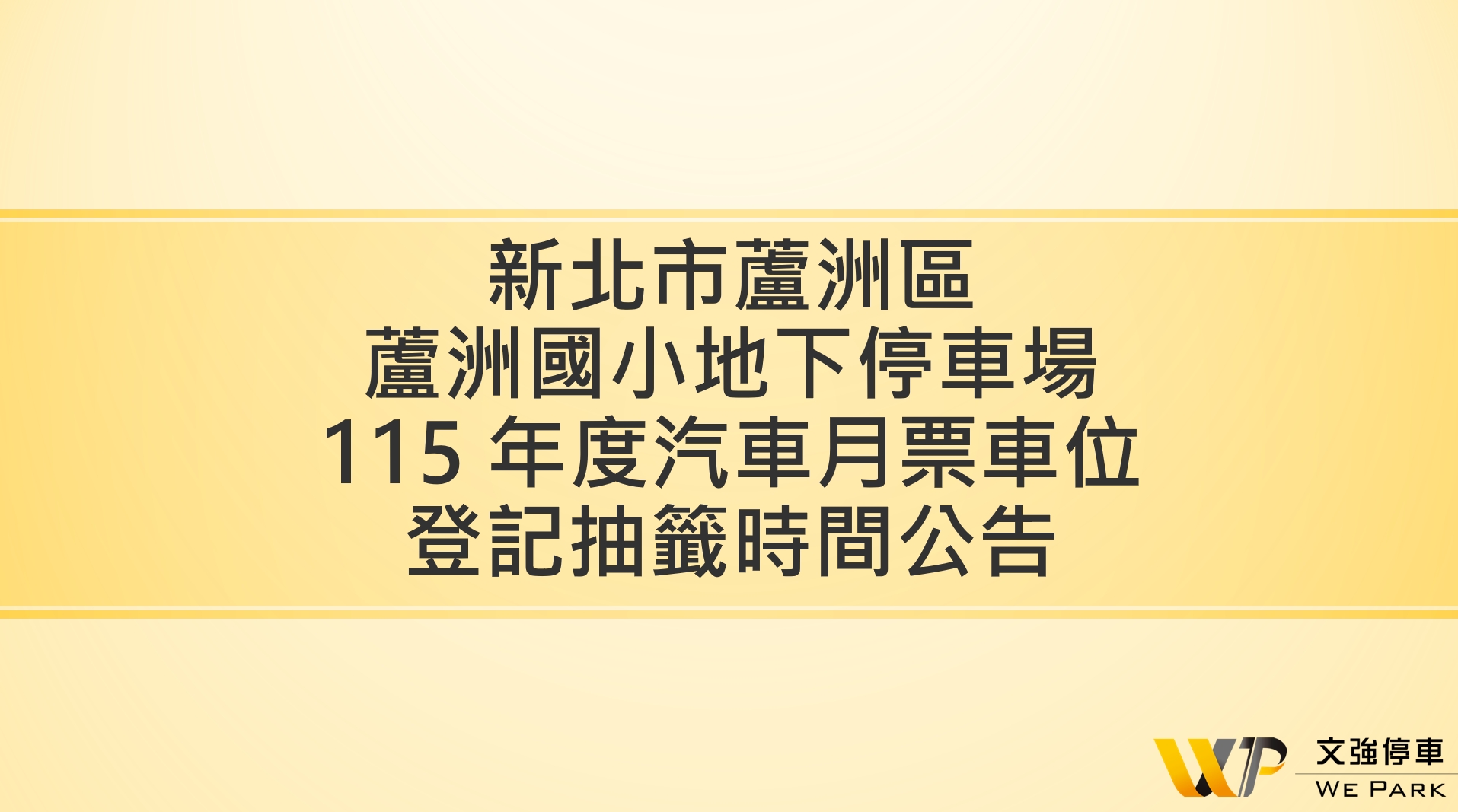 新北市蘆洲區蘆洲國小地下停車場115年度汽車月票車位登記抽籤時間公告