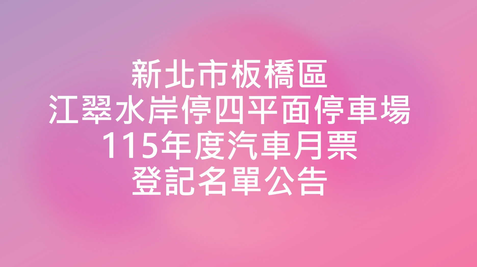 新北市板橋區水岸停四停車場115年度停車月票登記名單公告