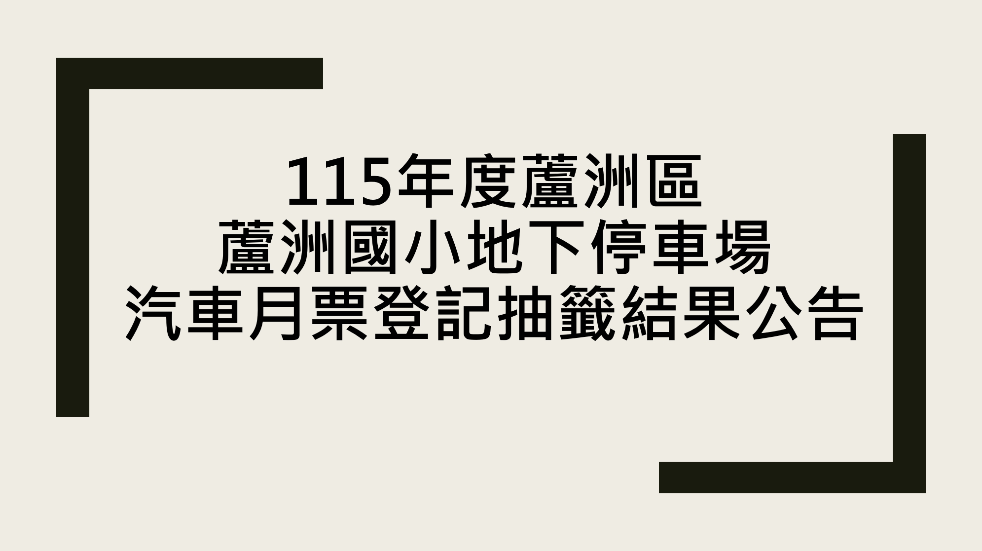 新北市蘆洲區蘆洲國小地下停車場115年度汽車月票登記抽籤名單公告